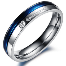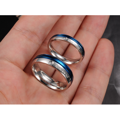 Ehering aus Titan Stahl in der Farbe silber blau wurde mit einem Zirkonia geschmückt.