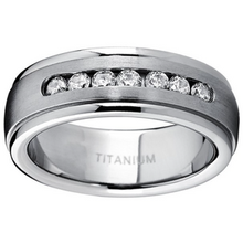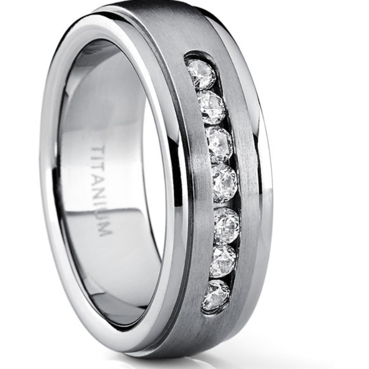 Dieser Ehering aus Titan wurde in der Mitte mit 7 Zirkonia Steinen verziert. Die hochpolierte Oberfläche garantiert einen sehr angenehmenTragekomfort. Details:Material: TitanStein: ZirkoniaRingbreite: 8mm