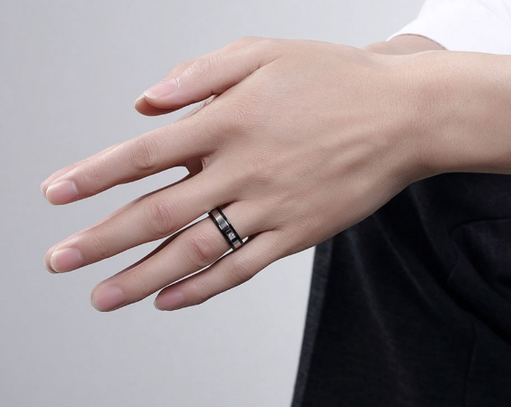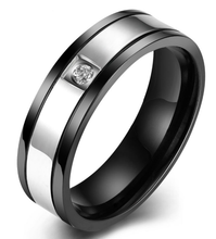 Dieser Ehering aus Titan wurde mit einem Zirkonia Stein verziert. Details: Material: TitanFarbe: Schwarz-SilberStein: Zirkonia